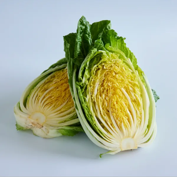 霜が降りる頃に甘みが増し、いっそうおいしくなる白菜。切ってみると、中心部が鮮やかなオレンジ色をしています。白菜特有の青臭さが少なく、ほんのりとした甘みとサクサクとした食感が特長。お肌のトラブル予防や、コラーゲンの減少を防ぐ働きがあるとも言われています。
