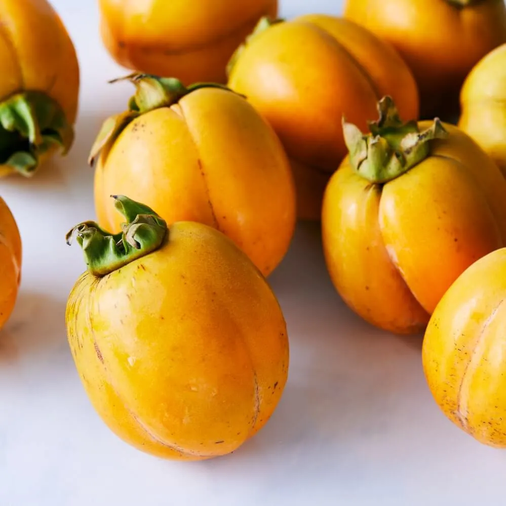 西条柿は広島県の西条が原産と言われ、地名が商品名になっています。西条柿は渋柿の一種で、そのままでは渋があります。ドライアイスを使った脱渋が行います。果肉はとても緻密で硬くなく柔らかいというほどでもなく、やさしく口の中で崩れる絶妙な感じです。糖度が高く甘いのも特徴です。