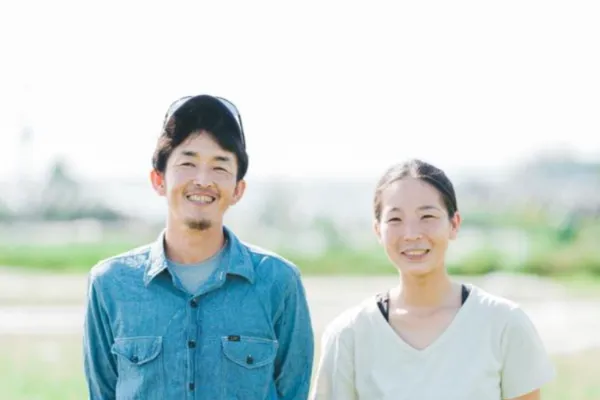 福岡市から朝倉市に移住し、笑顔で楽しみながら有機栽培に励む若いご夫婦。