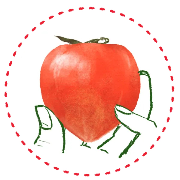ガクのまわりに出る濃い緑色とトマトの赤い色の差が強いほど、糖度が高い!