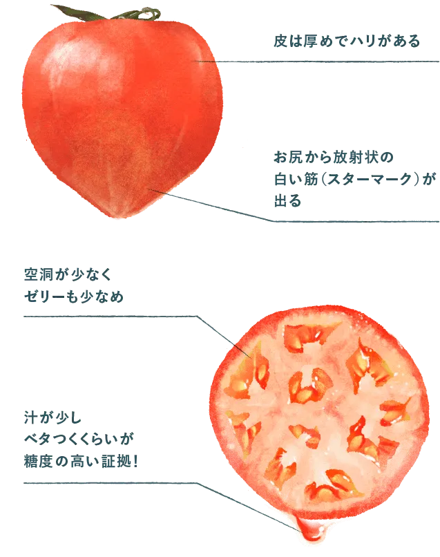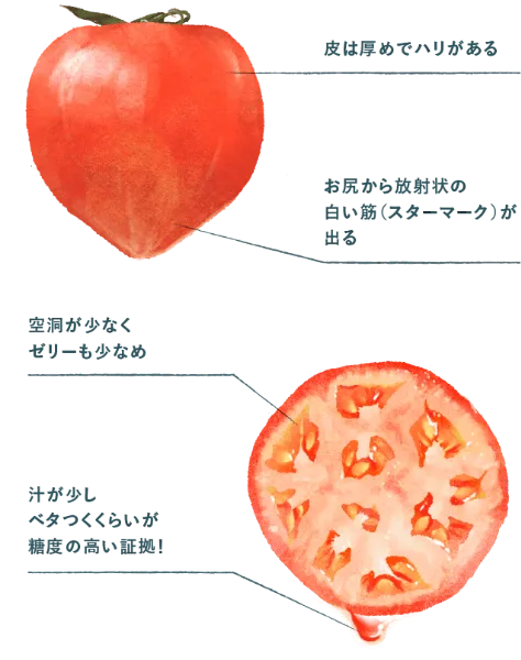 トマトのお尻から走る放射線状の白い筋がくっきりしているほど、美味しい!